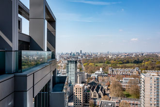 The twenty-fourth floor of the apartment is dedicated entirely to an expanse of entertaining space. The seamless flow between the rooms is punctuated by access to two large terraces, with views over Regent’s Park and beyond.